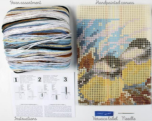 Az előnyomott nagy-lyukú párna gyorsan készül, a vastag fonal tömören betakarja a réseket. Mivel nem kell a szemeket számolni, így akár a gyerekek is kipróbálhatják.